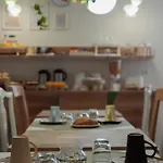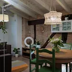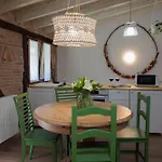 Aista Landetxea Guest House villa includes a dining area with a toaster, a stovetop, and kitchenware.